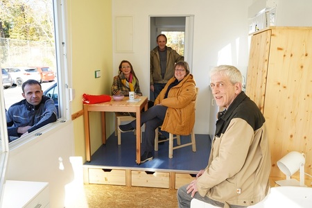 Die sieben Fachverbände der Caritas im Erzbistum Paderborn haben von Jugendlichen eines Berufsförderzentrums ein mobiles Haus bauen lassen. Zuerst genutzt wird es von einem Wohnungslosen, den der SKM in Paderborn betreut.